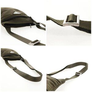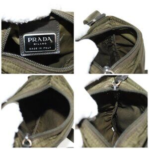 PRADA Pouch Shoulder Bag Nylon Khaki Silver Auth am9274V