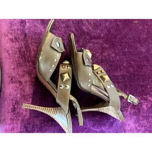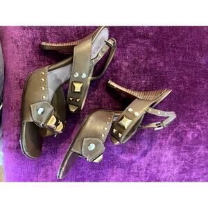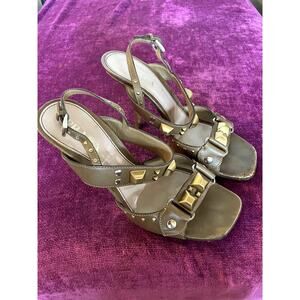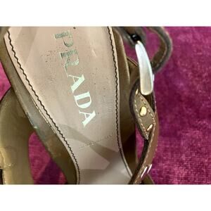 PRADA Pre-Loved Slingback Sandals w Chunky Studs Size 37 Shoes Tan Leather 7
