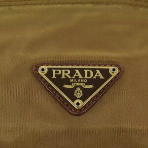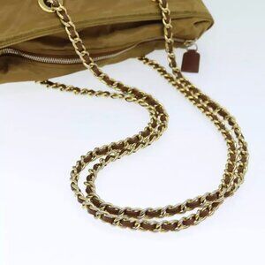 PRADA Quilted Chain Shoulder Bag Nylon Beige Auth ki4426