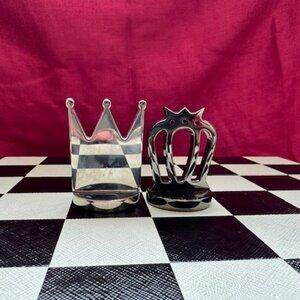 Elegant chess set with metal playing pieces, contained in an elegant Saffiano leather box.