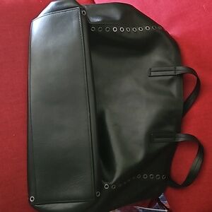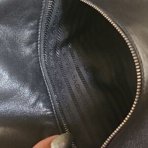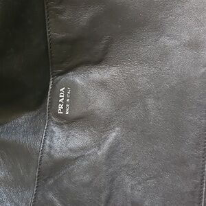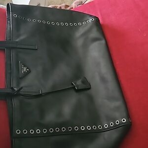 Authentic Prada tote bag. Italian leather. Excellent condition as you can see. Took pics in and out. Can hold plenty of things! Garnished w/gunmetal rivets which decorate this bag. Beautiful and large!
