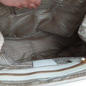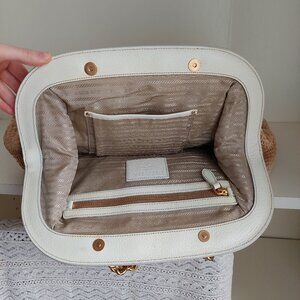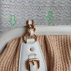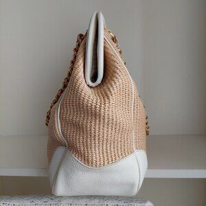 Prada Tan Raffia Straw & White Leather Large Satchel with Gold Chain Paglia Cinghiale