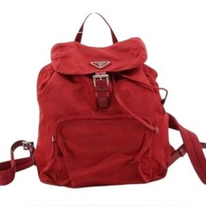 PRADA Red Nylon & Leather Triangle Backpack
