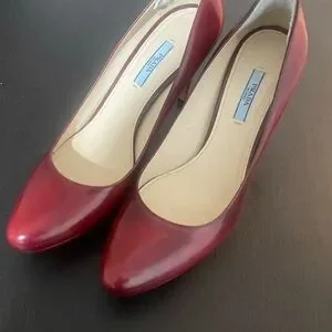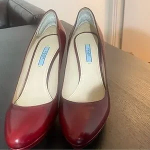 Red with a slight ombre Prada shoes. I originally got them from Goodwill and got them cleaned and fitted but I’m a size 10 and these are more like a size 10.5 or even 11, which is why I’m selling it. Never worn but tried on. Barely worn by previous owner.