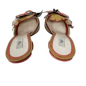 PRADA Red Tan Vintage Flower Heels Mules Spring 2008 Fairy Collection EU 37.5