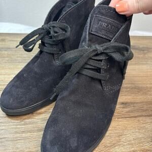 PRADA Rossa Desert Wedge Black Suede SIZE 38 Lace-up Booties