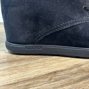 PRADA Rossa Desert Wedge Black Suede SIZE 38 Lace-up Booties