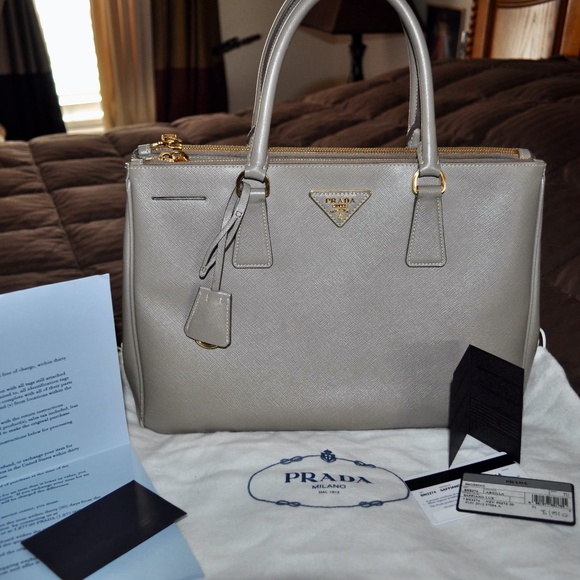 PRADA SAFFIANO LUX DOUBLE ZIP HANDBAG (ARGUILLA)