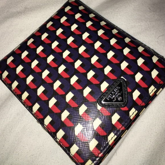 PRADA MENS saffiano leather wallet in great condition. Bought last year at PRADA in tysons corner this wallet is 100% authentic authenticity guaranteed. It is a special design that was featured on Pradas runway 2015 get it now at an amazing price. And extremely Roomy for a lot of credit cards and cash LOL