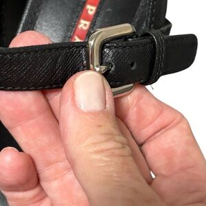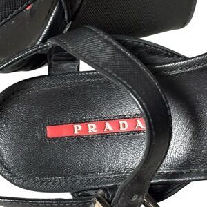 • Prada is prominent throughout the shoes sandals: inner sole, near back heel and also on the bottom of the heel