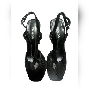 PRADA STRAPPY PEEP TOE SUEDE CORK HEEL BLACK SHOES Size 6 $995