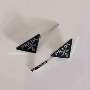 NWT. Chic Prada hair clips in black and silver. Add elegance to your look. Bundle with other items to get 15% off. Chanel Dior Zara Fendi Kenzo Prada Hermes Michael Kors Valentino Louis Vuitton Balenciaga Alexander Wang Kate Spade Hugo Boss Burberry McQueen Gucci Leger Oscar de la Renta Balmain Tom Ford Givenchy Lanvin Zac Posen Christopher louboutin Phillip Lim Margiela MaxMara Marni Kane Marc Jacobs Runway Fashion show week Premuim Signature collection original authentic real designer brand name sexy luxury