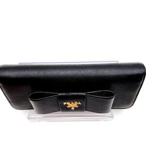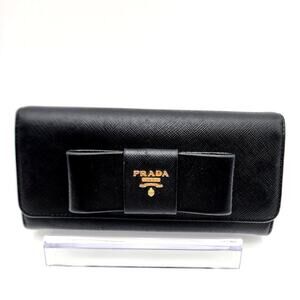 PRADA Saffiano Bow Continental Wallet Black 100% Authentic