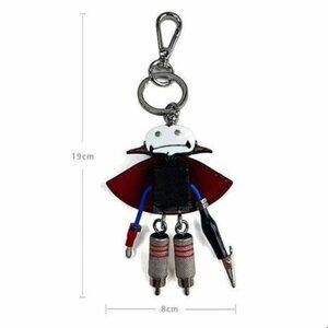 This is a Prada Saffiano leather Dracula robot charm keychain. Crafted from high-quality metal, it features a unique vampire theme, perfect for fans of distinctive accessories. Pre-owned. GREAT condition.