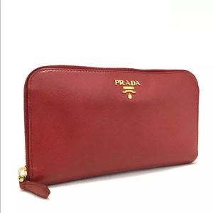PRADA Saffiano Red Leather Zip Around Long Wallet/