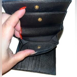 Prada Saffiano Triangle Hardware Flap Women's Compact Wallet Nero Black Used Prada Approx. Measurement: Base length: 5.25 in, Width: 1.25 in, Height: 4.00 in Black Saffiano Leather Wear on Triangle Prada Name Plate Minor scratches and scuffs Leather is smooth 2 small open compartments 1 bill compartment 1 coin snap pouch 7 card slots Great condition Please note that this is a pre-owned item, and there may be some rubbing on the edges/sides, stains or color bleeding or transference on the exterior/interior. There may also be scratches on the interior/exterior of the item. Corners may have rubbing or scratches. Please view all pictures as part of the description. 👇No refunds, returns, exchanges, or cancellations. 👇See all photos and read description before purchasing. 👇Ask questions before making purchase. *By purchasing you are agreeing that you have seen the photos and read the entire description. Photos of the item will be taken at time of packaging and shipping and copies will be emailed to Poshmark to ensure seller protection of items description. COA additional $49.