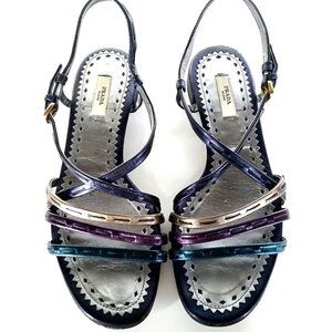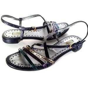 PRADA Sandals 38.5 Metallic Leather SZ 8