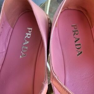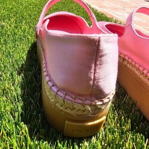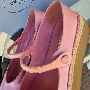 Color is Petalo ( Italian for 'Pink) Worn Twice Top is satin and insole is leather. Purchased vacationing in Italy, 2022. there is a little like a pen stain on one shoe since its satin I would take it to a shoe person or a cleaners won't cost much to clean otherwise pristine stored in out bags there is a small ink stain like a 12 inch line on top. cleaners can get it out s they re satin.