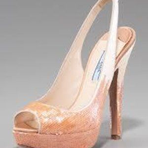 PRADA Sequin Paillette Open Toe Slingback Platform High Heel Sandals Shoes