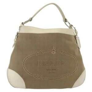 PRADA Shoulder Bag Canvas Beige Silver Auth 138851
