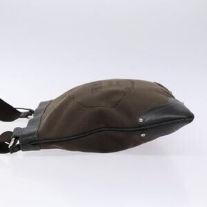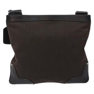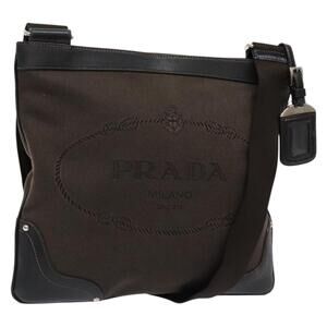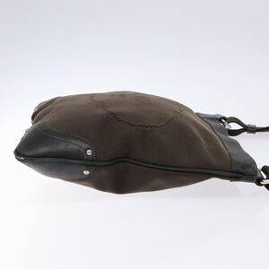 PRADA Shoulder Bag Canvas Leather Brown Silver