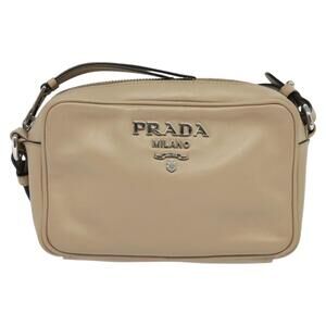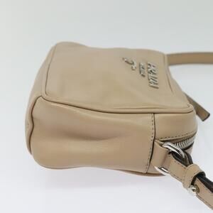 PRADA Shoulder Bag Leather Beige Silver