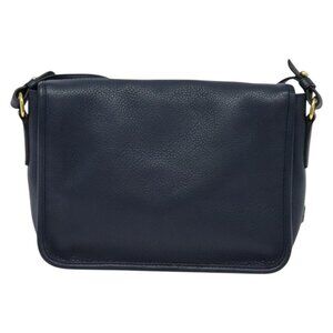 PRADA Shoulder Bag Leather Navy Gold 1BD091 Auth