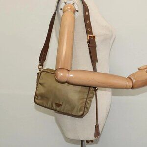 PRADA Shoulder Bag Nylon Beige Gold Auth 138224