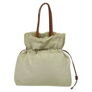 PRADA Shoulder Bag Nylon Beige Gold Auth MX164