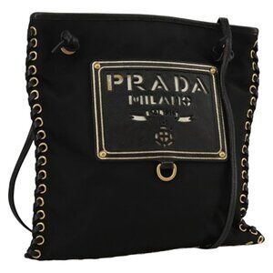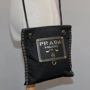 PRADA Shoulder Bag Nylon Black Gold Auth