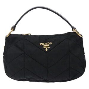 PRADA Shoulder Bag Nylon Black Gold Auth ki5865