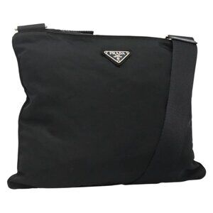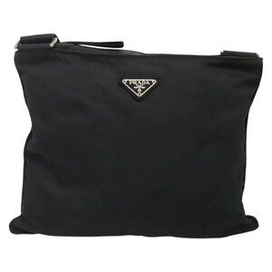 PRADA Shoulder Bag Nylon Black Silver Auth 132150