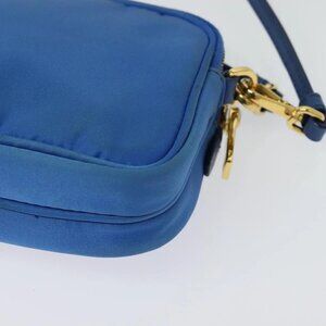 PRADA Shoulder Bag Nylon Gold Blue Auth 129679