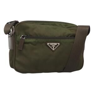 PRADA Shoulder Bag Nylon Khaki Silver