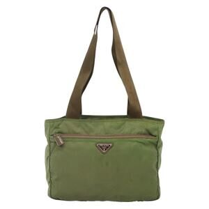 PRADA Shoulder Bag Nylon Khaki Silver