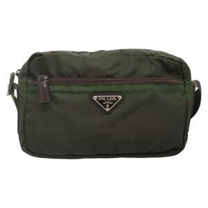 PRADA Shoulder Bag Nylon Khaki Silver
