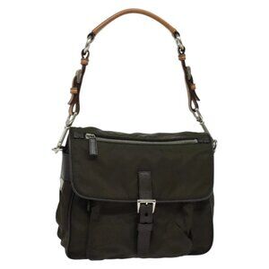 PRADA Shoulder Bag Nylon Khaki Silver Auth 132522