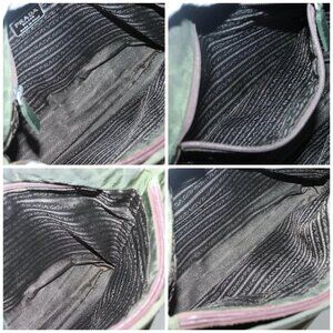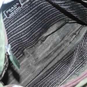 PRADA Shoulder Bag Nylon Khaki Silver Auth