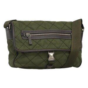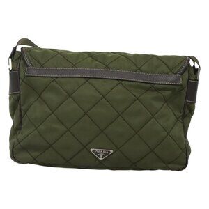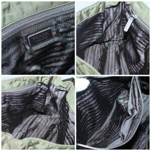 PRADA Shoulder Bag Nylon Khaki Silver Auth