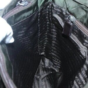 PRADA Shoulder Bag Nylon Khaki Silver Auth bs25613