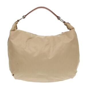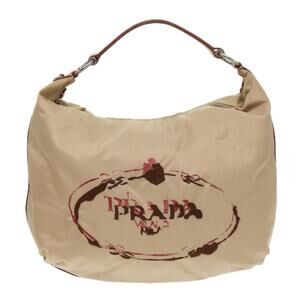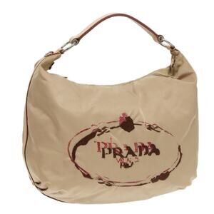 PRADA Shoulder Bag Nylon Leather Beige Silver