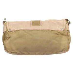 PRADA Shoulder Bag Nylon Leather Beige Silver Auth 130350