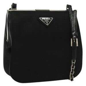 PRADA Shoulder Bag Nylon Leather Black Silver Auth 137290