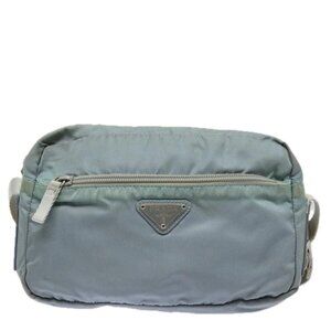 PRADA Shoulder Bag Nylon Light Blue Silver Auth 84645