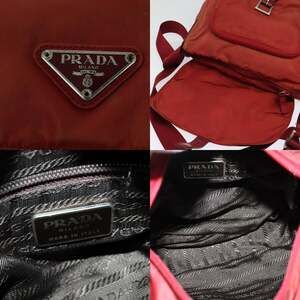PRADA Shoulder Bag Nylon Red Silver