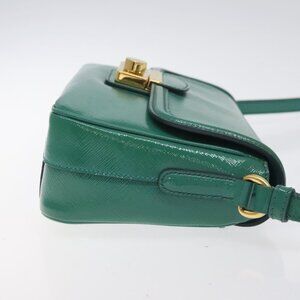PRADA Shoulder Bag Safiano leather Green Gold Auth