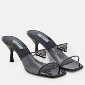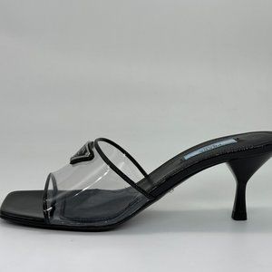 PRADA Signature Triangle Logo PVC Patent Mule Sandals Heels Slides Shoes