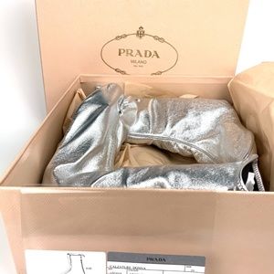PRADA Silver, Flexible Zip-Up Shoe with Suede Sole