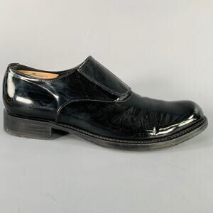 PRADA Size 10 Black Patent Leather Hook Loop Loafers