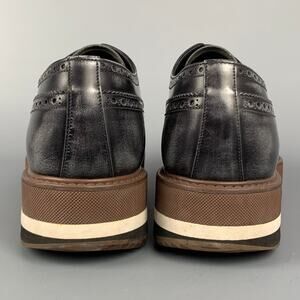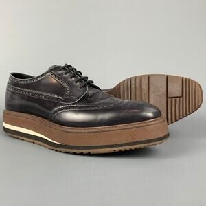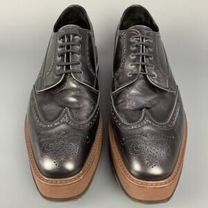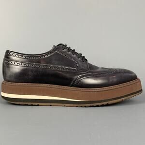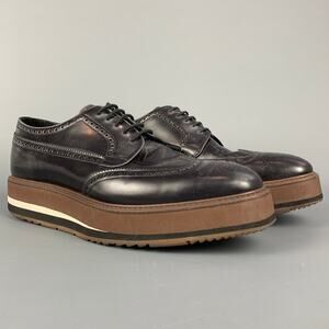 PRADA Size 10.5 Black & Brown Perforated Leather Platform Lace Up Shoes